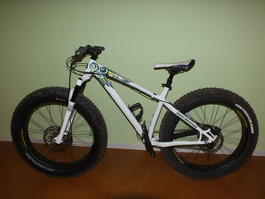 Mein neues Fahrrad, ein Rocky Mountain Fatbike, 26" und 4,8" Reifen, ideal um auf Power zu trainieren.