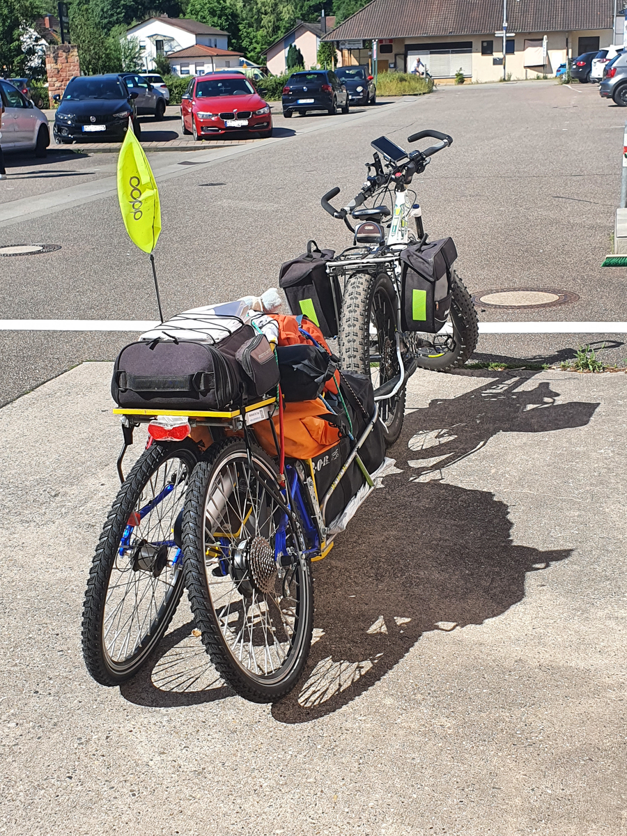 Wollte nach Kroatien starten, bin aber auf der ersten Etappe gestürzt und habe dann erstmal abgebrochen, Knie und Schulter rechts angeschlagen.