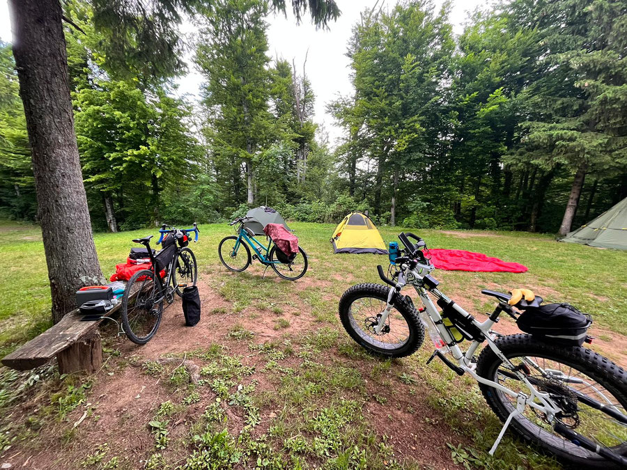 Übernachtet im "Camp Spik", ein einfacher Camping-Platz. In der Nacht heftiges Gewitter mit Wasser im Zelt, war nicht so schön, da alles nass.