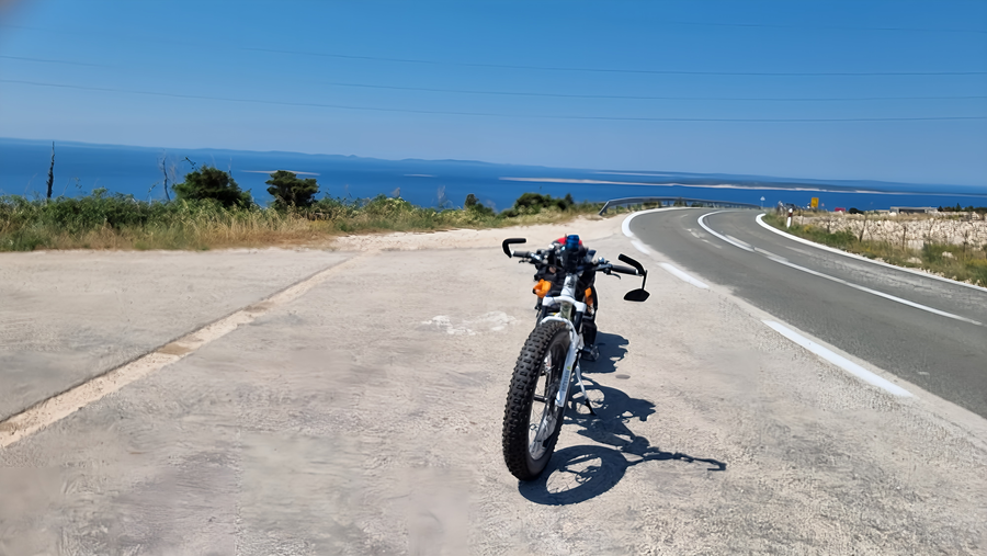 Heute bin ich zu meiner Tour nach Kroatien gestartet mit FatBike und Anhänger. Mein Anhänger hat einen Motor zur Unterstützung.